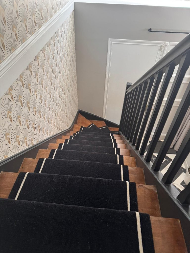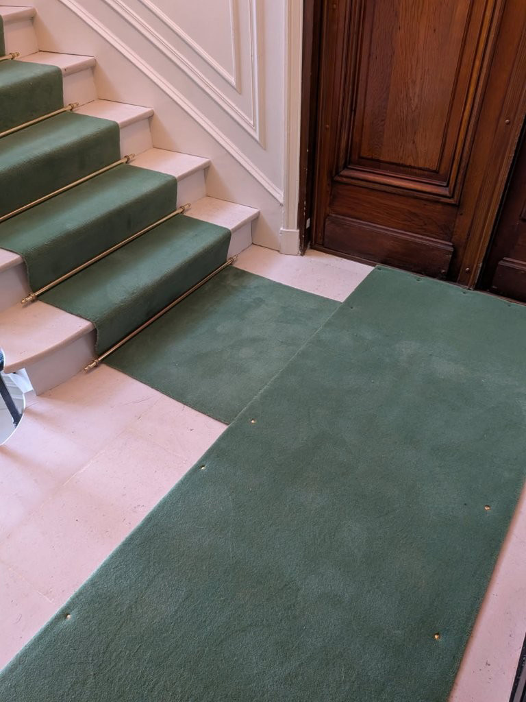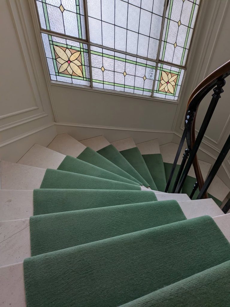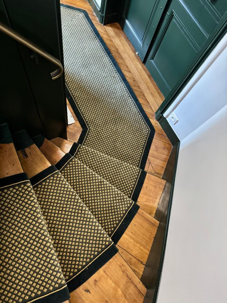 Tissés en France sur métiers jacquard Wilton traditionnels, les tapis de passage et de circulation tissés sur mesure et les tapis d’escalier fabriqués sur mesure.